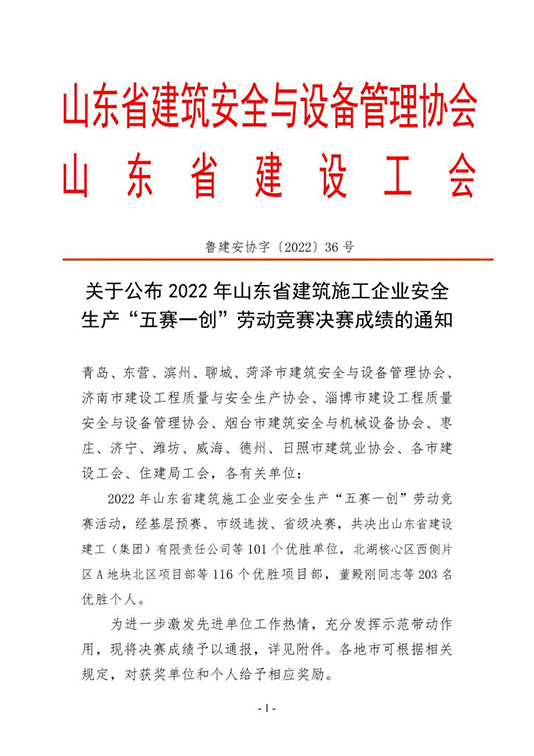 經(jīng)過預(yù)賽、市級(jí)選拔、省級(jí)決賽,山東天華建筑安裝有限公司成功榮獲“山東省建筑施工企業(yè)安全生產(chǎn)‘五賽一創(chuàng)’勞動(dòng)競賽優(yōu)勝單位”稱號(hào)。
