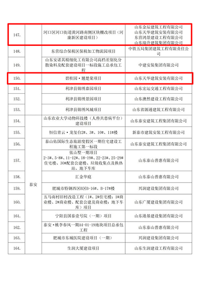 近日,山東省建筑安全與設備管理協(xié)會公布了華東地區(qū)建筑施工安全生產(chǎn)標準化工地名單和2022年建設工程項目施工工地安全生產(chǎn)標準化學習交流項目名單。天華實業(yè)集團承建的碧桂園·翹楚棠項目榮獲“華東地區(qū)建筑施工安全生產(chǎn)標準化工地”稱號;東營匯富尚悅居1#、9#、15#、18#、21#樓項目、河康新區(qū)建設項目和碧桂園·翹楚棠項目榮獲山東省“2022年建設工程項目施工工地安全生產(chǎn)標準化學習交流項目”稱號。