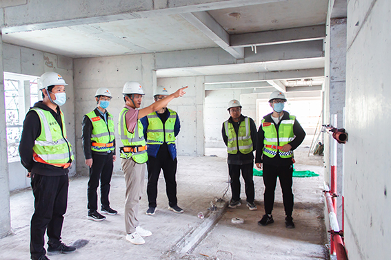 作為總承包,項(xiàng)目部團(tuán)隊(duì)在工程總承包管理中充分發(fā)揮管理和科技優(yōu)勢(shì),嚴(yán)把質(zhì)量關(guān)、確保工程安全,巡檢成績(jī)優(yōu)異。項(xiàng)目經(jīng)理徐粵,在巡檢過(guò)程中統(tǒng)籌得當(dāng),協(xié)調(diào)強(qiáng)有力的人力物力資源,使迎檢工作得以順利開(kāi)展。生產(chǎn)經(jīng)理燕春飛,統(tǒng)籌協(xié)調(diào)現(xiàn)場(chǎng)質(zhì)量安全提升,對(duì)現(xiàn)場(chǎng)人員安排合理,責(zé)任壓實(shí)到位,對(duì)各項(xiàng)工作細(xì)致跟蹤,是巡檢成績(jī)突飛猛進(jìn)的強(qiáng)有力保證。技術(shù)主管蘇偉東,對(duì)樓棟實(shí)測(cè)實(shí)量、缺陷處理等方面把控全面,尤其實(shí)測(cè)得分94.05%成績(jī)優(yōu)異。安全主管楊泮月,對(duì)現(xiàn)場(chǎng)安全文明施工狀態(tài)管理到位,取得顯著成效。