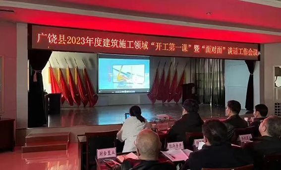 2月26日,天華實業(yè)集團(tuán)參加了縣住建局組織召開廣饒縣2023年度建筑施工領(lǐng)域“開工第一課”暨“面對面”談話工作會議,全縣開發(fā)、監(jiān)理、施工企業(yè)主要負(fù)責(zé)人及安全總監(jiān)等100余人參加。