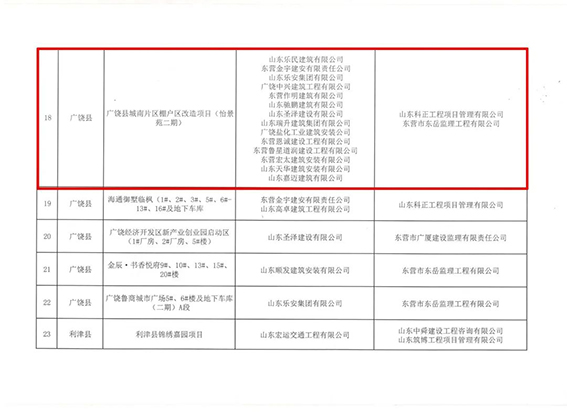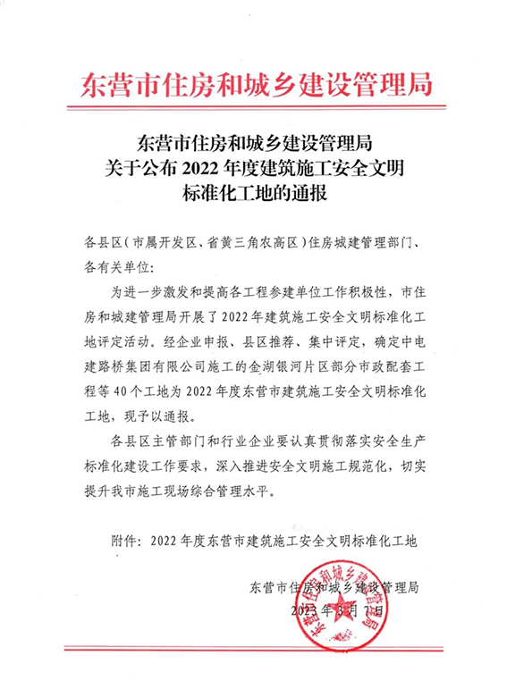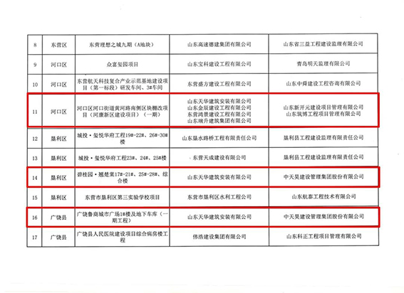 3月7日,東營(yíng)市住房和城鄉(xiāng)建設(shè)管理局公布“2022年度建筑施工安全文明標(biāo)準(zhǔn)化工地”名單,天華實(shí)業(yè)集團(tuán)承建的東營(yíng)新城吾悅廣場(chǎng)項(xiàng)目吾悅首府工程、河口區(qū)河康新區(qū)建設(shè)項(xiàng)目(一期)、墾利區(qū)碧桂園·翹楚棠工程、廣饒魯商城市廣場(chǎng)1#樓及地下車庫(kù)工程、廣饒縣城南片區(qū)棚戶區(qū)改造項(xiàng)目共5個(gè)項(xiàng)目光榮上榜。