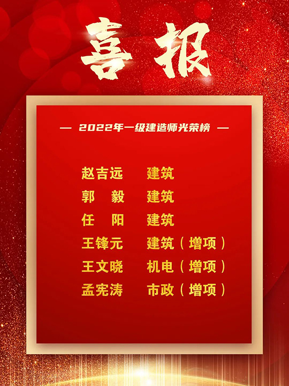 4月7日,2022年全國(guó)一級(jí)建造師考試成績(jī)公布,天華實(shí)業(yè)集團(tuán)工程部王鋒元、趙吉遠(yuǎn)、郭毅,集團(tuán)市場(chǎng)部王文曉,六分公司碧桂園·翹楚堂項(xiàng)目部任陽(yáng),二分公司小清河項(xiàng)目部孟憲濤共六名員工順利通過(guò)考試,體現(xiàn)了天華員工在工作中積極進(jìn)取,提升自我,不斷提升崗位技能的專業(yè)精神。