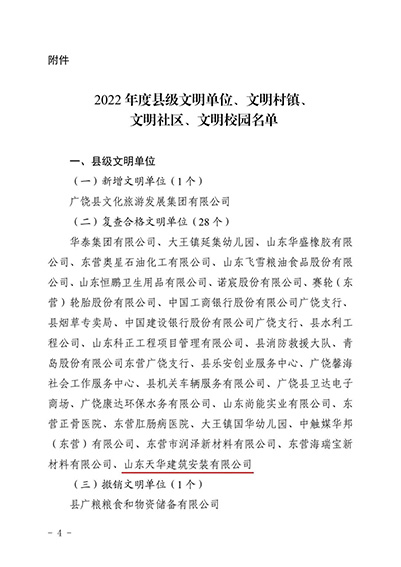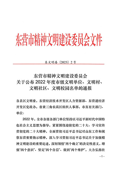 近日,東營市和廣饒縣精神文明建設委員會相繼下發(fā)表彰文件,天華實業(yè)集團榮獲2022年度東營市級、廣饒縣級文明單位榮譽稱號,這標志著集團精神文明建設工作邁上新的臺階。