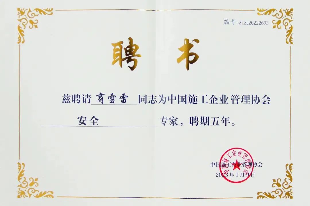 △ 中國(guó)施工企業(yè)管理協(xié)會(huì)安全專家證書