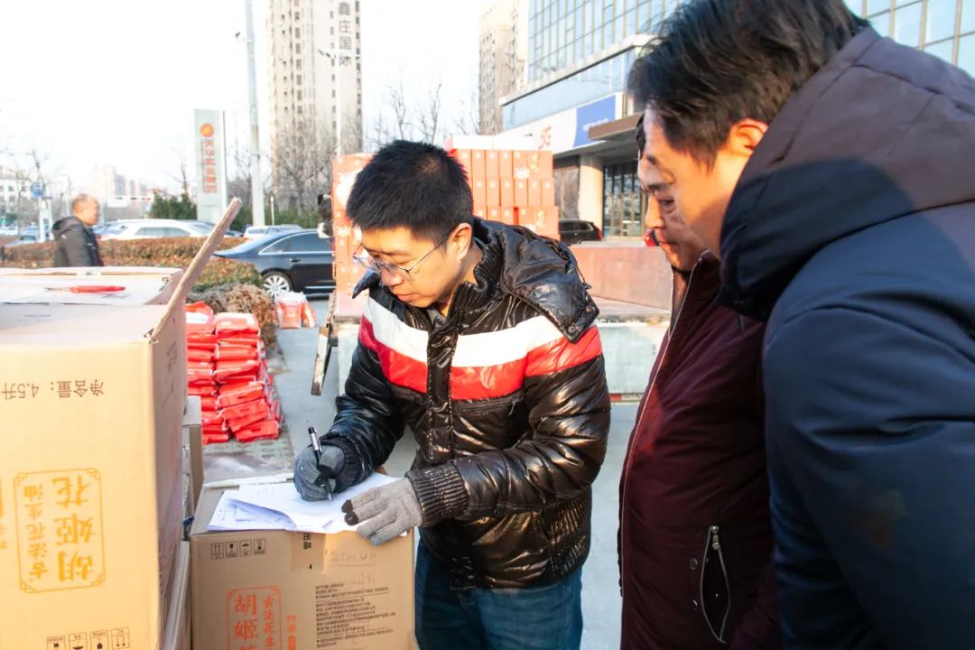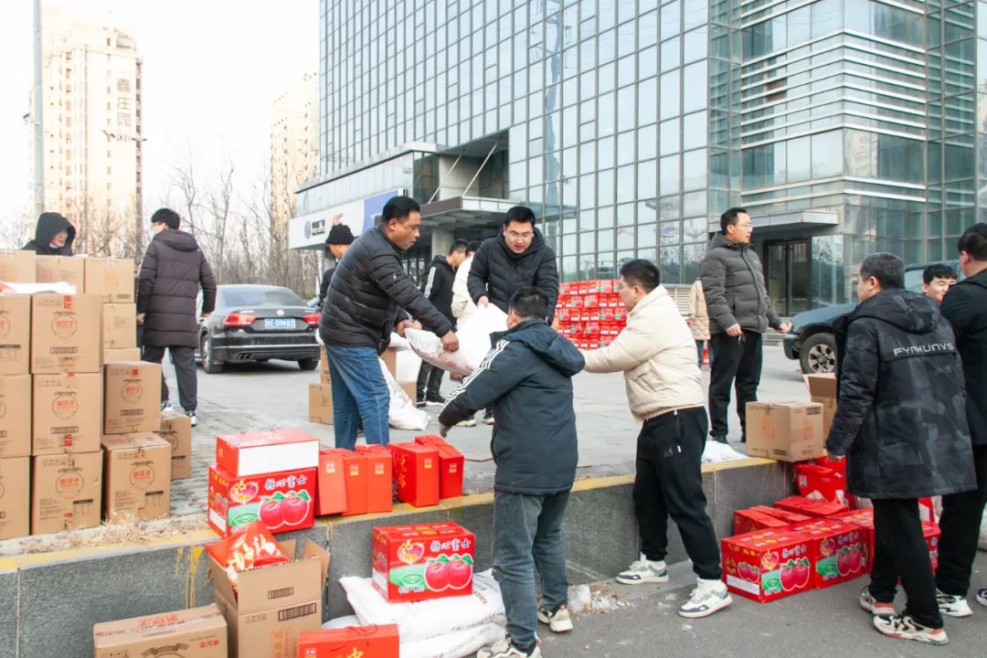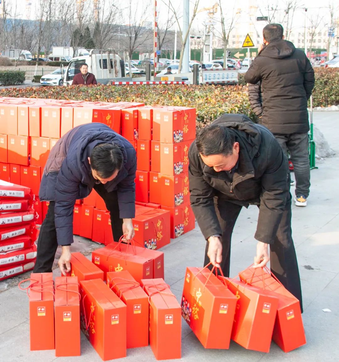 龍騰華夏迎新歲,新年福利暖人心。盡管天氣寒冷,但在福利發(fā)放現(xiàn)場卻熱火朝天、氣氛熱烈。工作人員相互協(xié)作、默契配合,搬運物品、核對數(shù)量、維護秩序,把一份份承載著公司關(guān)懷的年貨福利發(fā)放到員工手中。員工們手抬肩扛,喜在心上,幸福感躍然眉間。沉甸甸的福利不僅給大家?guī)砹诵麓旱淖8?,也給每位員工心里帶來了信心滿滿的希望和勁頭。