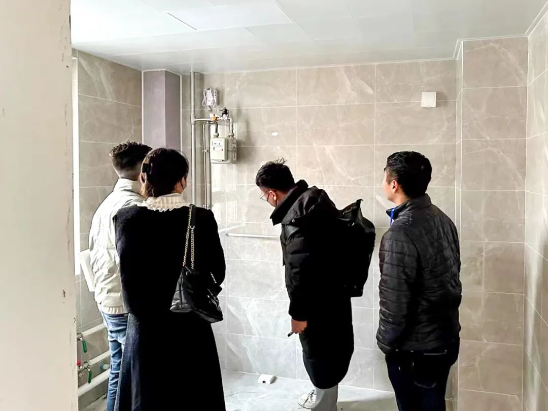 從入戶、客廳再到臥室,張女士一絲不茍的對屋內(nèi)細(xì)節(jié)進行查驗,期間,項目工作人員全程陪同。
