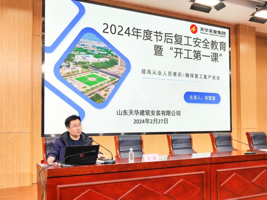 復(fù)工復(fù)產(chǎn),安全第一。為深入貫徹落實(shí)各級(jí)黨委政府關(guān)于安全生產(chǎn)重要決策部署,推動(dòng)建筑工地順利復(fù)工復(fù)產(chǎn),確保全縣安全生產(chǎn)工作開好局、起好步,2月27日,利津縣住房與城鄉(xiāng)規(guī)劃建設(shè)局組織開展2024年全縣建筑施工領(lǐng)域“開工第一課”暨安全生產(chǎn)專題培訓(xùn)會(huì)議??h住房城建局黨組書記、局長季宗勇,施工安全分管副局長徐星春,各鄉(xiāng)鎮(zhèn)街道城建分管負(fù)責(zé)同志,施工安全監(jiān)管人員和建筑業(yè)企業(yè)、在建項(xiàng)目主要負(fù)責(zé)人、總監(jiān)、安全員等共計(jì)180余人參加會(huì)議。天華實(shí)業(yè)集團(tuán)安全總監(jiān)商雷雷應(yīng)邀出席并授課。