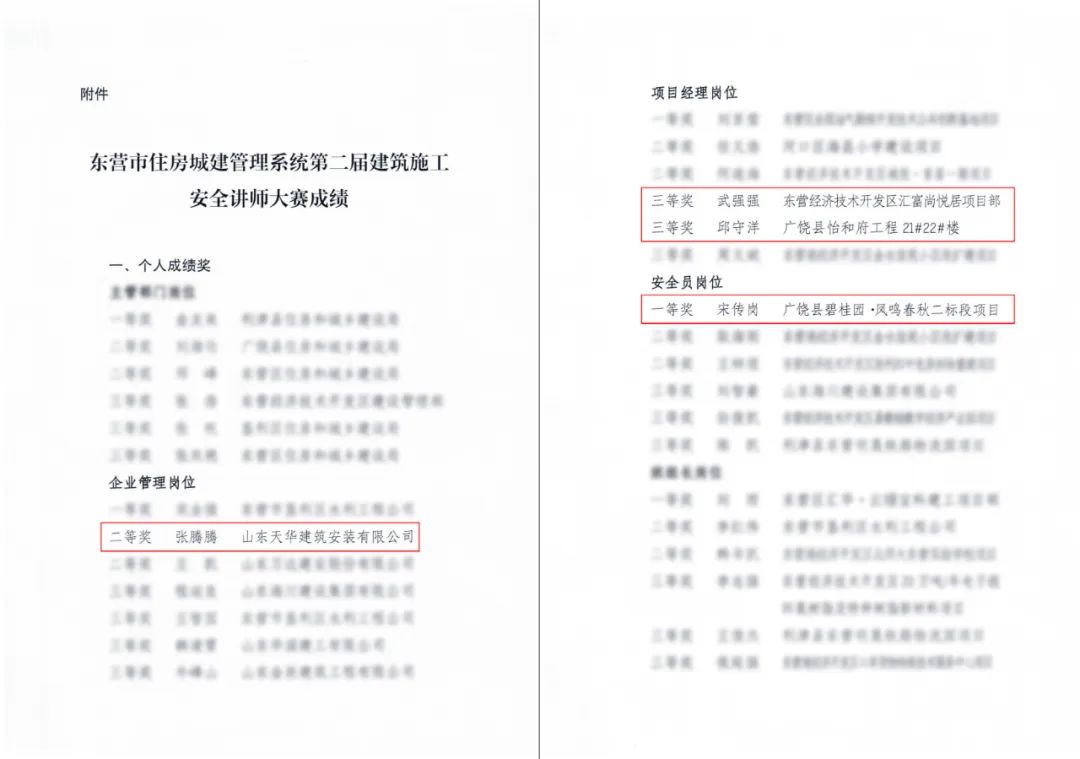 近日,天華實(shí)業(yè)集團(tuán)在東營(yíng)市第二屆建筑施工安全講師大賽中再創(chuàng)佳績(jī)。4名安全講師從57名參賽選手中脫穎而出,其中聊城鐵投金辰云璽項(xiàng)目部宋傳崗榮獲安全員崗位一等獎(jiǎng);集團(tuán)工程部張騰騰榮獲企業(yè)管理崗位二等獎(jiǎng);匯富尚悅居項(xiàng)目部武強(qiáng)強(qiáng)、廣饒怡和府項(xiàng)目部邱守洋榮獲項(xiàng)目經(jīng)理崗位三等獎(jiǎng),充分展現(xiàn)了公司安全講師團(tuán)隊(duì)的實(shí)力。