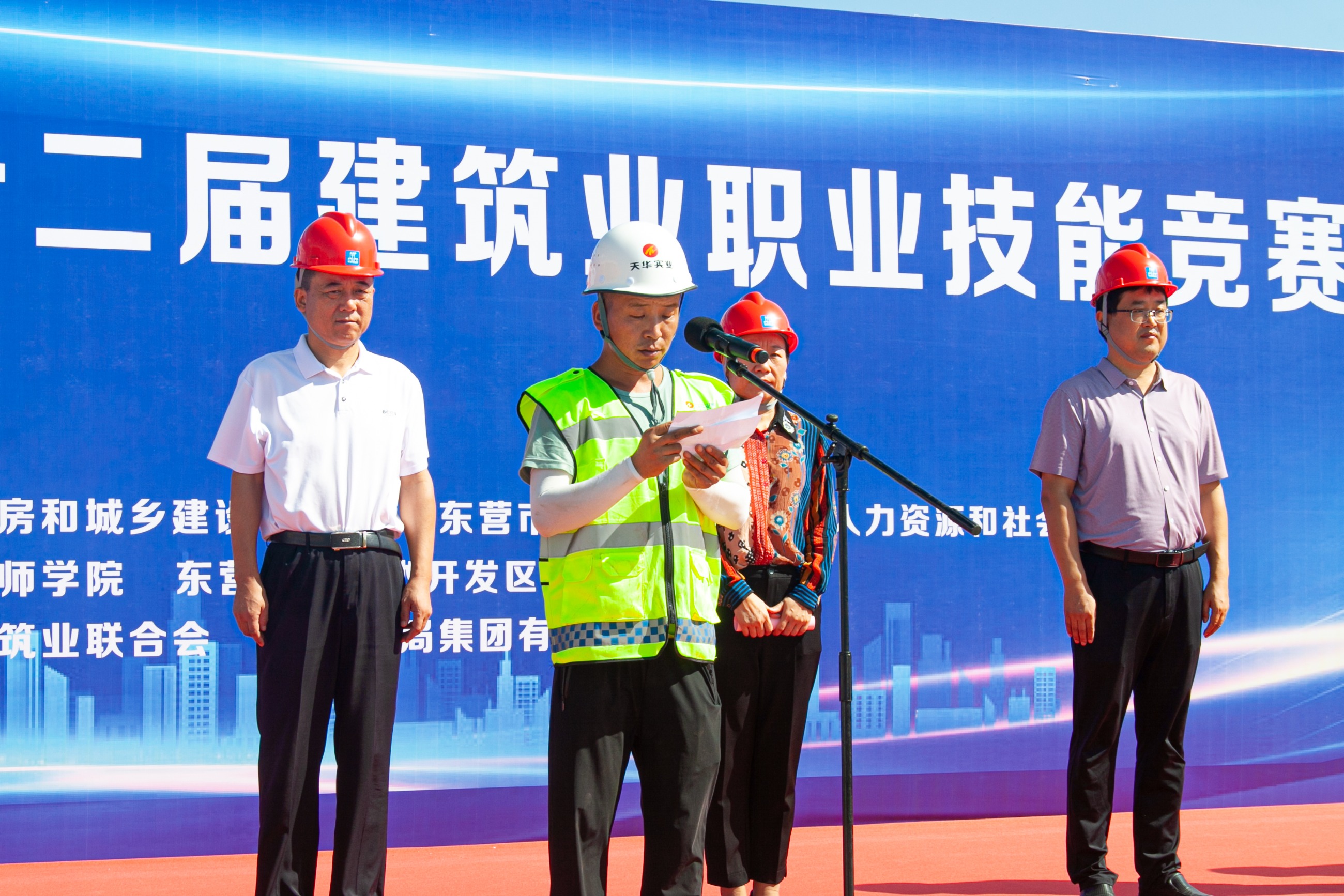 為進(jìn)一步激發(fā)全市建筑行業(yè)廣大職工學(xué)技術(shù)、練硬功、強(qiáng)素質(zhì)的熱情,提升廣大職工隊(duì)伍專(zhuān)業(yè)技能及創(chuàng)新活力,打造高素質(zhì)建筑工人隊(duì)伍,8月28日,東營(yíng)市第十二屆建筑業(yè)職業(yè)技能大賽在市大型智能(仿真)實(shí)習(xí)實(shí)訓(xùn)基地項(xiàng)目現(xiàn)場(chǎng)舉辦。市住房城建管理局黨組成員、三級(jí)調(diào)研員岳翠峰出席并致辭,市技師學(xué)院、市人力資源和社會(huì)保障局、市總工會(huì)有關(guān)負(fù)責(zé)同志,天華實(shí)業(yè)集團(tuán)董事長(zhǎng)、東營(yíng)市建筑業(yè)聯(lián)合會(huì)會(huì)長(zhǎng)閆國(guó)亮參加。