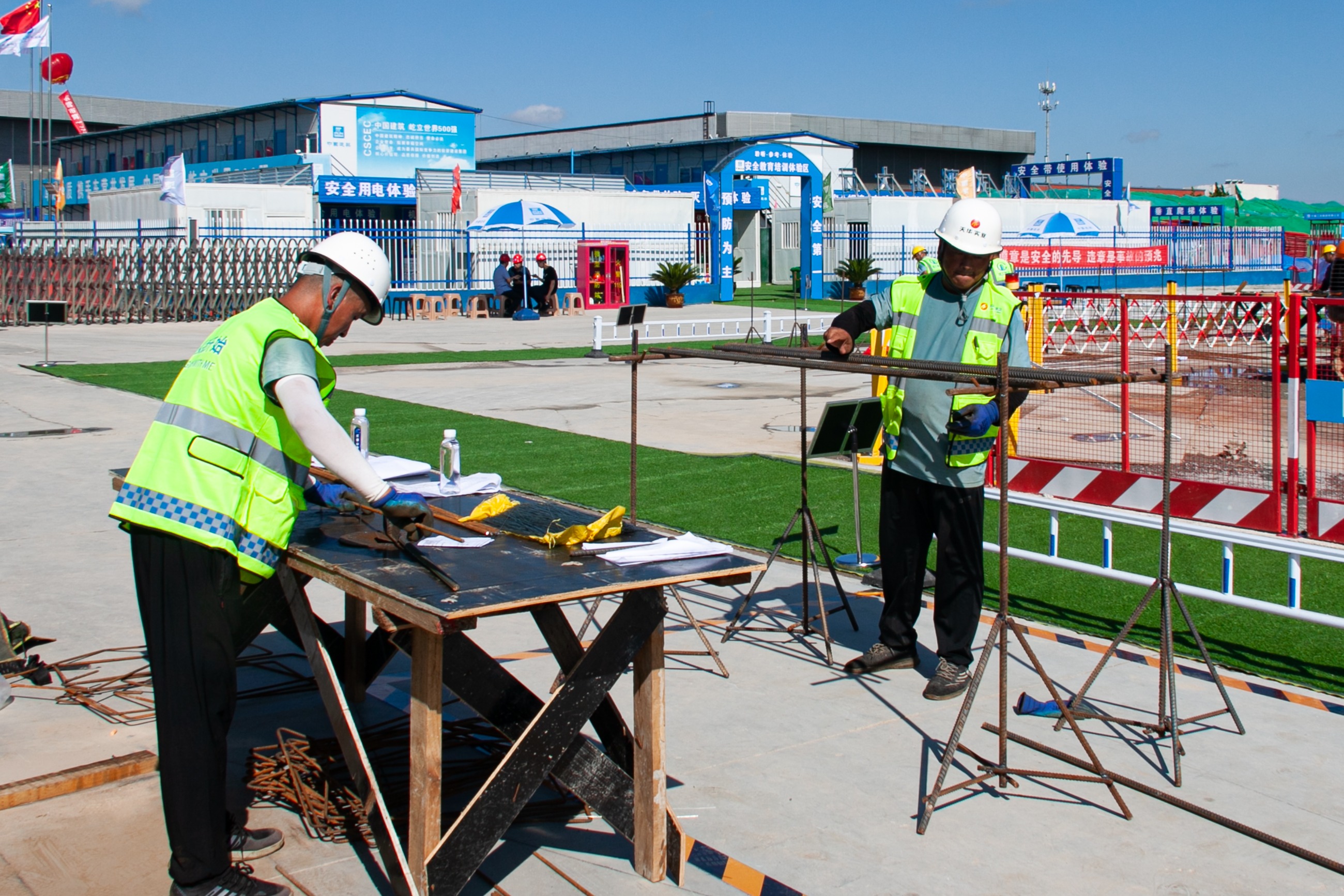 天華實(shí)業(yè)集團(tuán)吾悅學(xué)府項(xiàng)目部員工尚金明、林祥云,嚴(yán)格遵循比賽規(guī)則與要求,認(rèn)真做好比賽前的各項(xiàng)準(zhǔn)備工作。