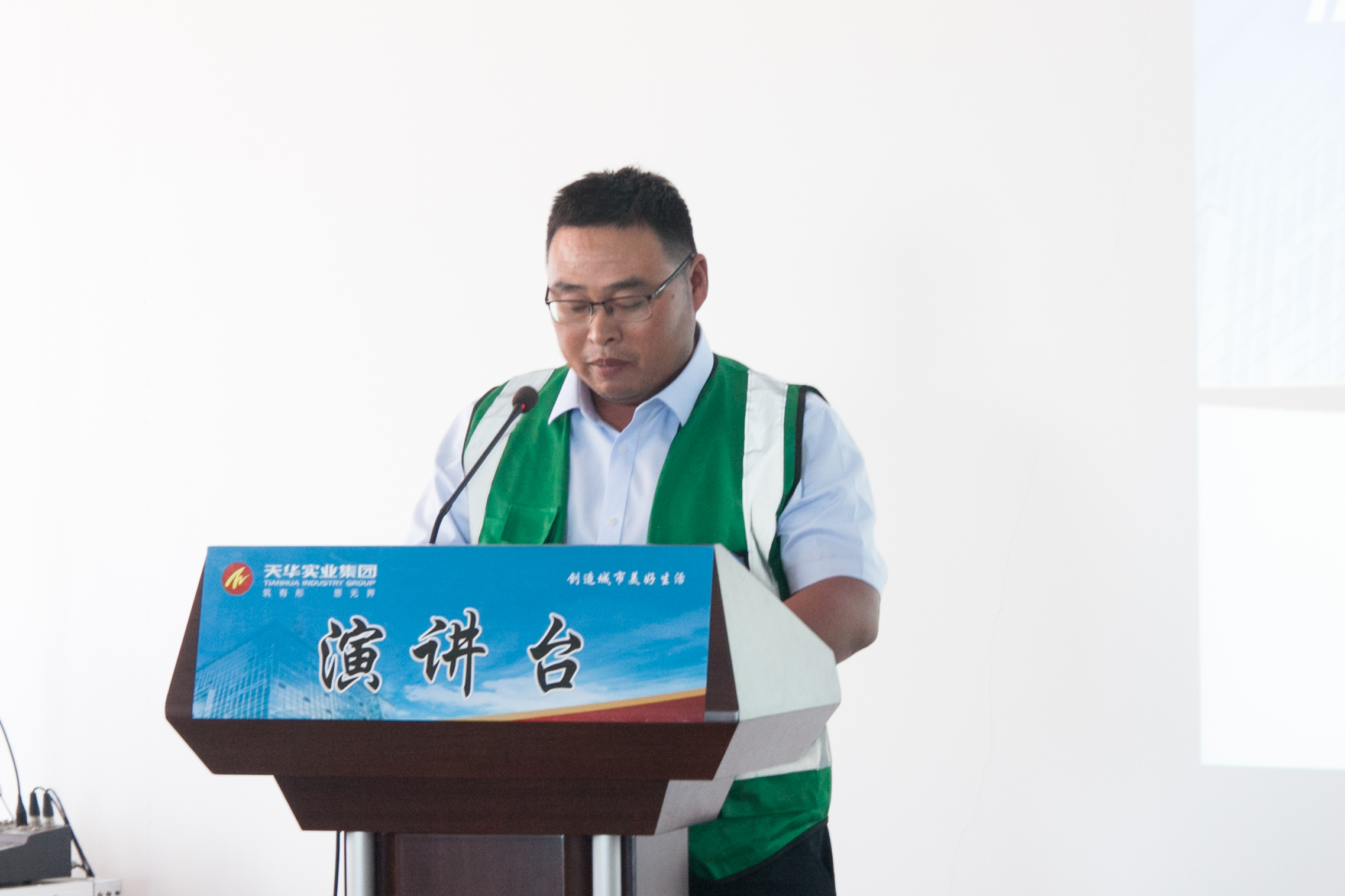 廣饒縣住房和城鄉(xiāng)建設(shè)局黨組副書記朱波致辭,對(duì)天華實(shí)業(yè)集團(tuán)近年來(lái)取得的成績(jī)表示肯定,預(yù)祝此次活動(dòng)圓滿成功并宣布競(jìng)賽開(kāi)始。