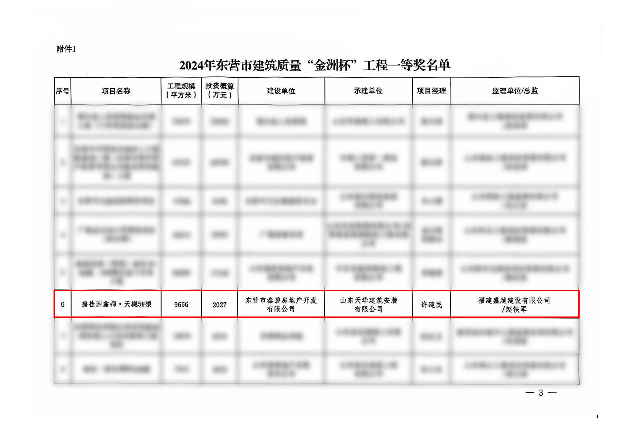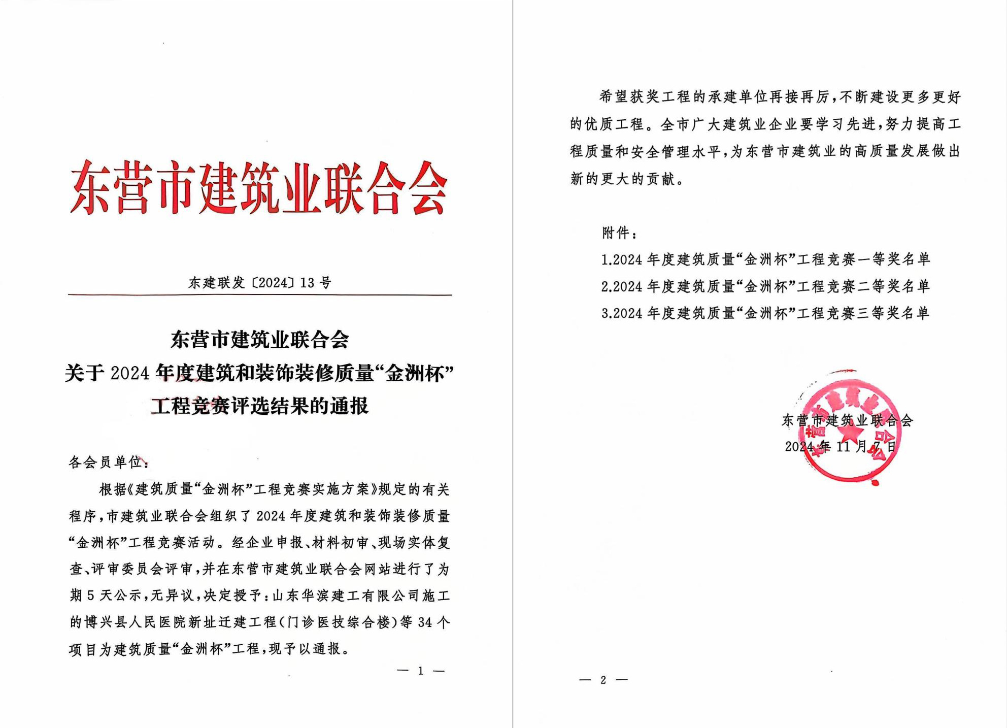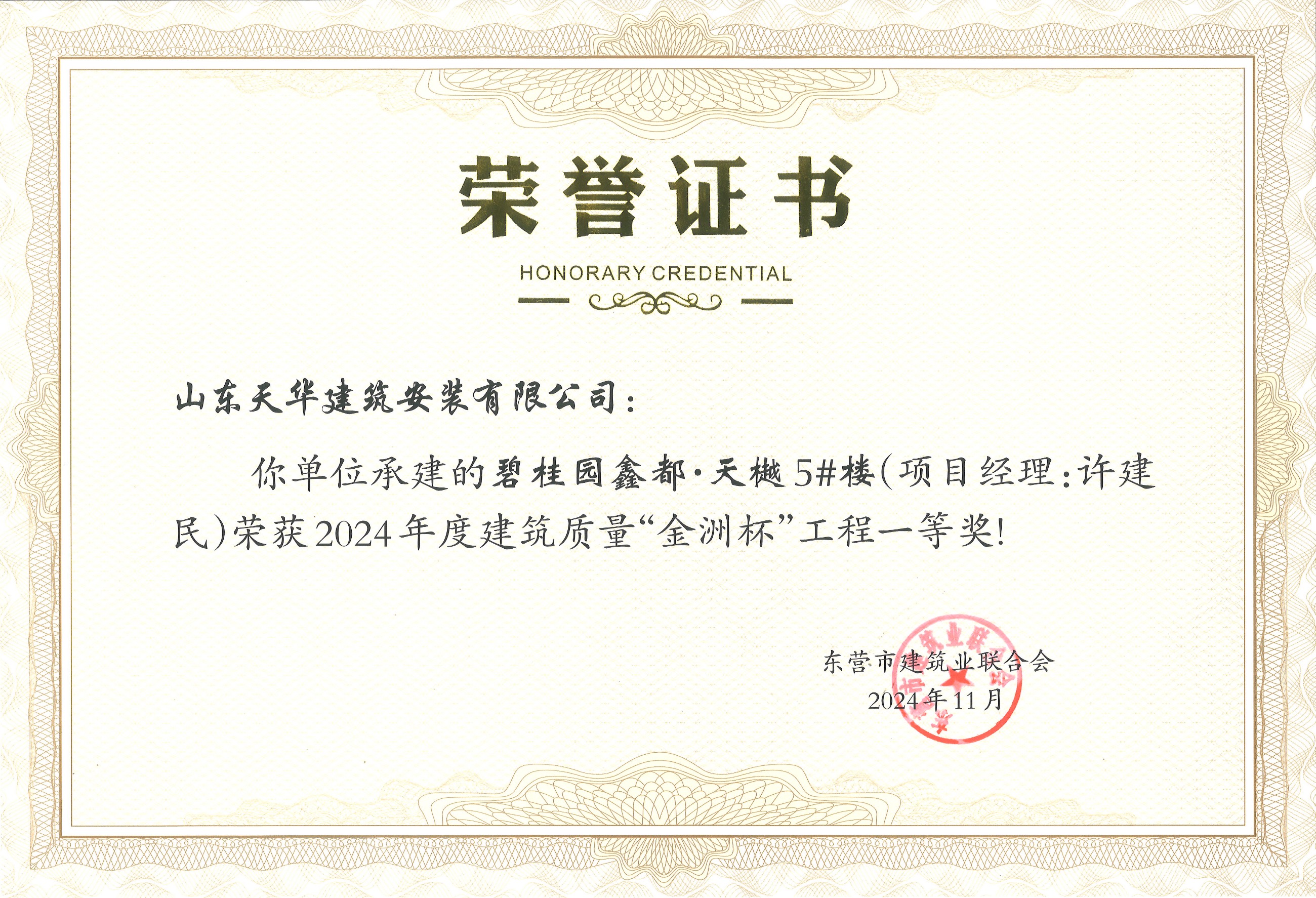近日,東營市建筑業(yè)聯(lián)合會公布了《關(guān)于2024年度建筑和裝飾裝修質(zhì)量“金洲杯”工程競賽評選結(jié)果的通報》,天華實業(yè)集團承建的碧桂園鑫都·天樾5#樓榮獲“金洲杯”工程競賽一等獎;碧桂園鑫都·天樾1#、3#、7#、8#樓榮獲“金洲杯”工程競賽三等獎。