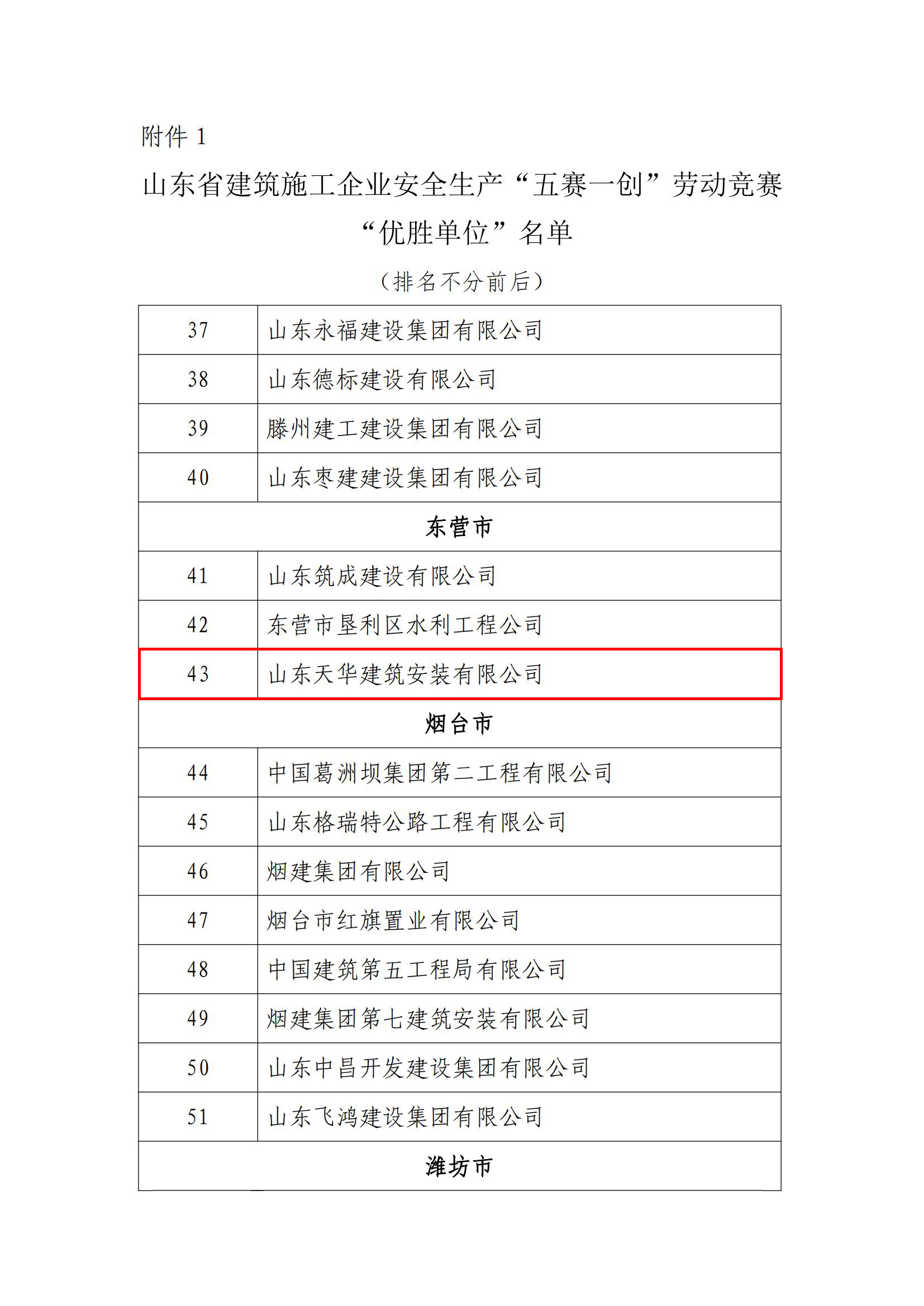 經基層預賽、市級選拔、省級決賽,山東天華建筑安裝有限公司榮獲“山東省建筑施工企業(yè)安全生產‘五賽一創(chuàng)’勞動競賽‘優(yōu)勝單位’”稱號。