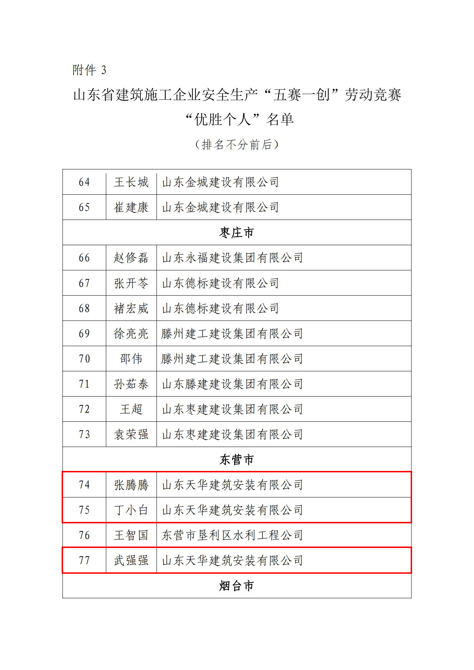 張騰騰、丁小白、武強強榮獲“山東省建筑施工企業(yè)安全生產‘五賽一創(chuàng)’勞動競賽‘優(yōu)勝個人’”稱號。