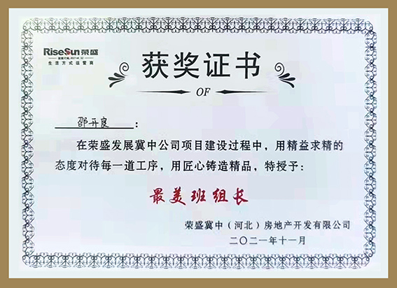 11月23日,由榮盛冀中公司主辦的“聚力榮盛 同心共贏”2021年度供應(yīng)商大會(huì)在河北滄州舉行。天華實(shí)業(yè)集團(tuán)榮獲2021年度“精誠(chéng)合作獎(jiǎng)”,公司盛榮·墨香山南項(xiàng)目部鋼筋班組邵開(kāi)良獲評(píng)“最美班組長(zhǎng)”。