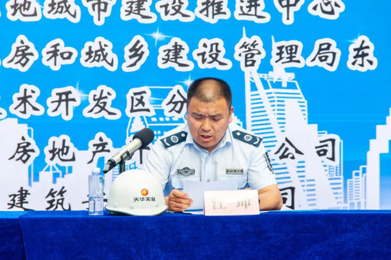 東營市住房和城鄉(xiāng)建設(shè)管理局東營經(jīng)濟(jì)技術(shù)開發(fā)區(qū)分局局長郇九湘就繼續(xù)做好房建市政施工安全工作做強(qiáng)調(diào)講話。