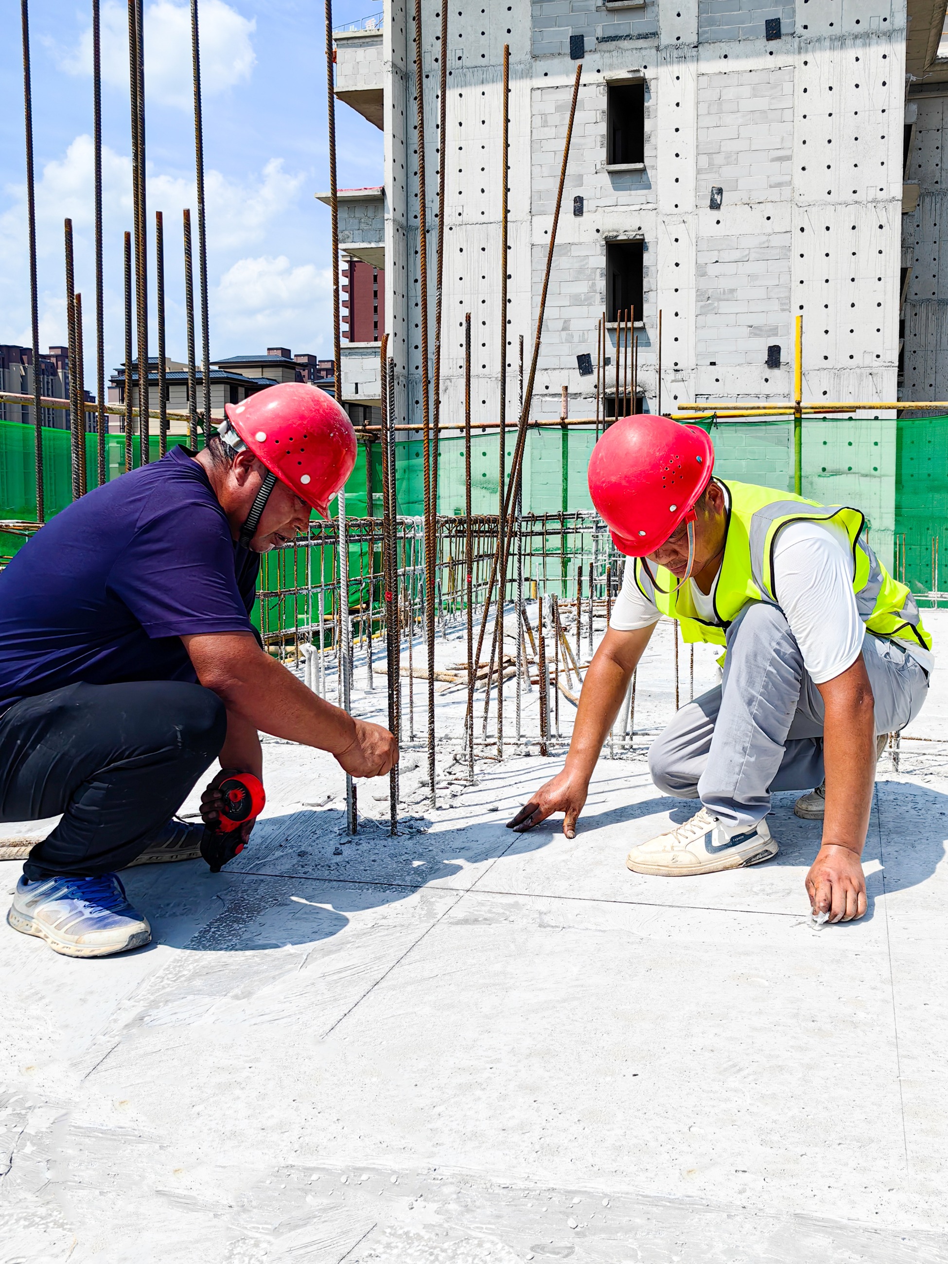 剛才還是炎炎烈日,頃刻便是狂風(fēng)暴雨,建筑人腳上的鞋子總是沾滿泥濘,濕透的工服,無阻大步前行。他們,與烈日較勁,與高溫抗衡,酷暑難耐仍不忘精益求精,他們常說:堅持不懈、使命必達是匠人必備的素養(yǎng)!